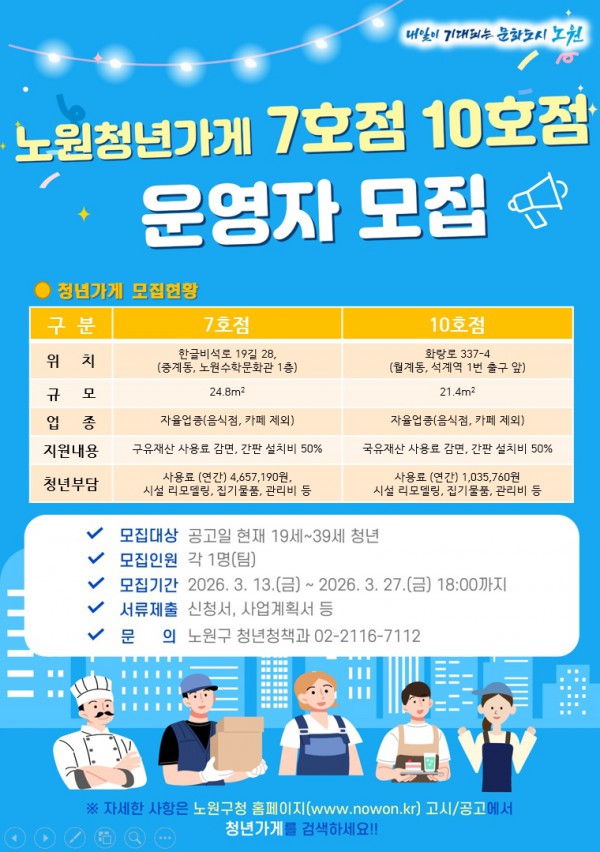 노원 청년가게 7호·10호점 신규 운영자 모집