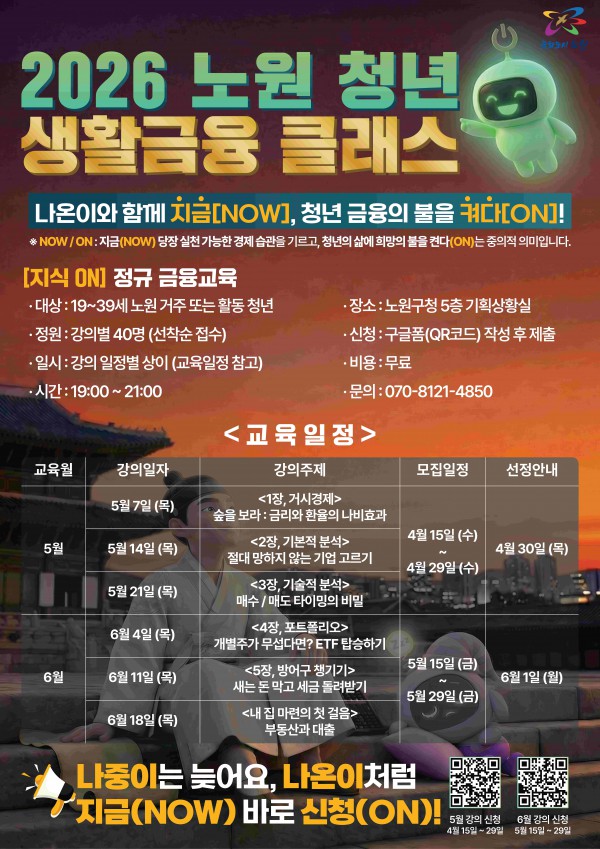 2026 노원 청년 생활금융 클래스 <지식 ON> 정규 교육 참가자 모집 안내