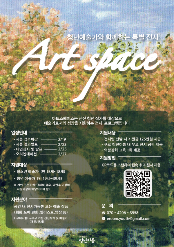아트 스페이스는 역량 있는 청년 예술가를 발굴하고, 작품활동을 지원하여